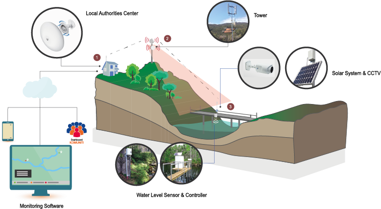 An early warning system that allow authorities and communities to get access in receiving real time alerts. An innovative system which will inform community members about the water level and prepare for any eventualities.